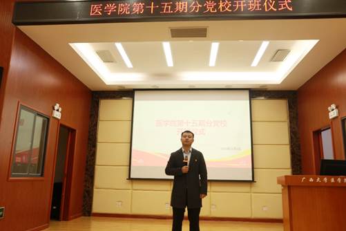 11月4日下午,医学院第十五期分党校开班仪式在学院学术报告厅举行。医学院党委书记李波、专职组织员张静出席仪式,全体入党积极分子、发展对象和预备党员培训班学员约150人参加仪式。