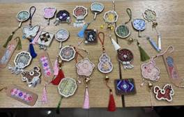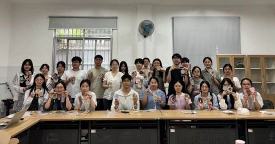 随后支部以“三月三”传统节日为契机,开展“织绣壮乡韵,同心筑共圆”主题党日活动。党员们分组体验壮锦冰箱贴、壮锦书签、壮锦风铃等非遗手工制作,在穿针引线、剪裁拼贴中深入了解壮锦的历史内涵与非遗技艺,感受广西民族文化的独特魅力。大家在参与活动中深切体会到:非遗传承需要久久为功、不急功近利,药学科研同样需要持之以恒的匠心精神,每一份实验数据的真实记录、每一篇论文的严谨撰写、每一次实验操作的规范执行,都是药学人责任担当的生动体现。
